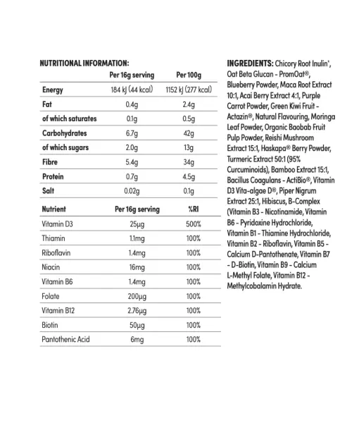 This all-in-one health support will take your dietary diversity to the next level, setting your body up for the day. It contains 15 whole plants, gut-boosting fibre, vitamins and minerals in powder form to deliver maximum nutritional value in doses you can feel working.