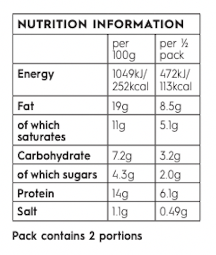 Soft Goats Cheese (90%) [Milk] Fig (6%) Sugar Lemon Juice (Lemon Juice from Concentrate Water Lemon Oil) Apple Juice (Apple Juice from Concentrate Acid (Citric Acid)) Balsamic Vinegar of Moderna (Wine Vinegar Cooked Grape Must) Refined Waxy Maize Starch Natural Flavouring Gelling Agent (Gellan Gum) Preservative (Potassium Sorbate)